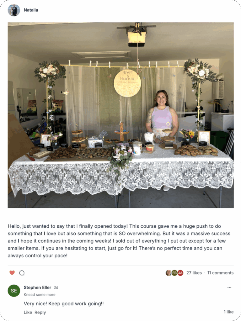 Every story on this page comes from someone who began in a familiar place- loving baking, but unsure how to turn that love into something practical and sustainable.